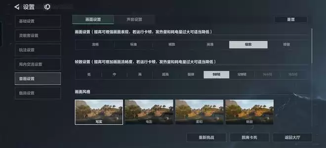 图像质量选择"极高",同时将帧率上限调为60FPS。
