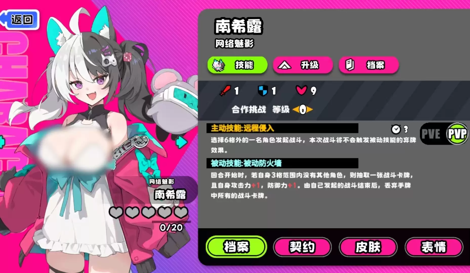 南希露之所以那么抢手,是因为她的主动技和被动技都很强势。虽然在不同模式下,她的技能效果会有一些差异,但在定位和作用上其实都大同小异。其中,如果在合作模式里选择南希露,她能在发动主动技后无视距离,选择任意一只怪物进行战斗。并且只要怪物与她的距离超过了三格,那么即便怪物有反击机制,也无法对南希露生效。同时,只要南希露的回合开始时,她身边三格内如果没有怪物,还能抽张战术手牌,自身更是能获得攻击+2和防御+2的被动,但会在发动战斗后丢弃张战术手牌(由主动技进入的战斗不会弃牌)。