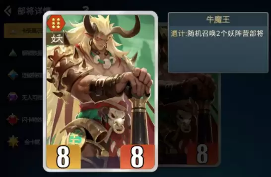 队伍中还可以考虑加入玉面狐狸,这名角色属于妖系阵营。如果玩家在游戏中召唤了其他同类角色,玉面狐狸还能额外获得其一半的战斗力。即便暂时召唤不到蜘蛛儿,也能凭借这个特性持续增强队伍实力。只要能够成功召唤角色,我方在战场上的数量就会比对手更多,整个阵营的战斗力也会随之增强。牛魔王同样是妖系阵营中的强力角色,在阵亡后同样可以随机召唤两名同类部将,玩家无需担心队伍输出不足的问题。