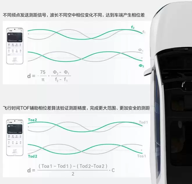 而星闪数字车钥匙利用相位差与飞行时间(TOF)测距技术,将定位精度相比传统蓝牙提升了 5 倍(达到厘米级),解闭锁精准度提升了 6 倍。同时,TOF 技术能获取真实距离,有效抵御中继攻击等虚假信号,构建了严密的安全机制。