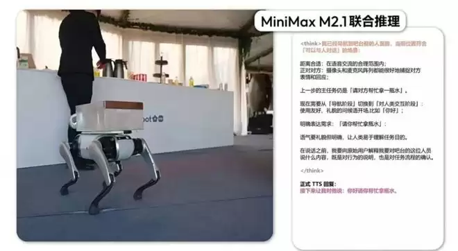 12月22日,维他动力发布的机器狗Vbot披露了合作MiniMax的新模型M2.1,宣传“实现空间智能Agent”。