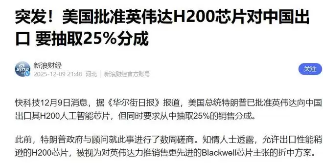 美国人的算盘打得很精,我给你H200,够你用一阵子,但你也别想追上我最新的技术。而且你用了我的芯片,就会依赖我的生态,你的国产替代计划就会慢下来。更绝的是,这些卖给中国的芯片,每卖一块,英伟达还得向美国政府缴纳25%的“对华芯片税”,大概率这个“税”最终还得转嫁到中国消费者身上。好家伙,用中国的钱,养美国对中国的封锁体系,这生意做得可真够精明的。