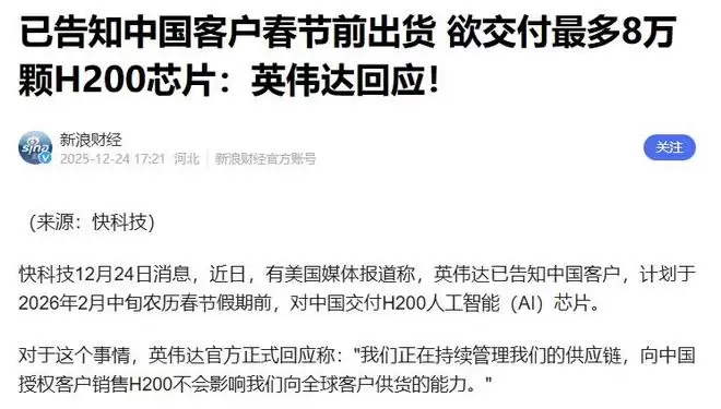 英伟达这波操作不对劲!事情是这样的,中国这边还没批一张进口许可证呢,外媒就爆出消息说英伟达已经开始通知客户——2026年春节前,H200就能交付。这话说得,好像我们中国的企业都眼巴巴等着他们的芯片救命似的。