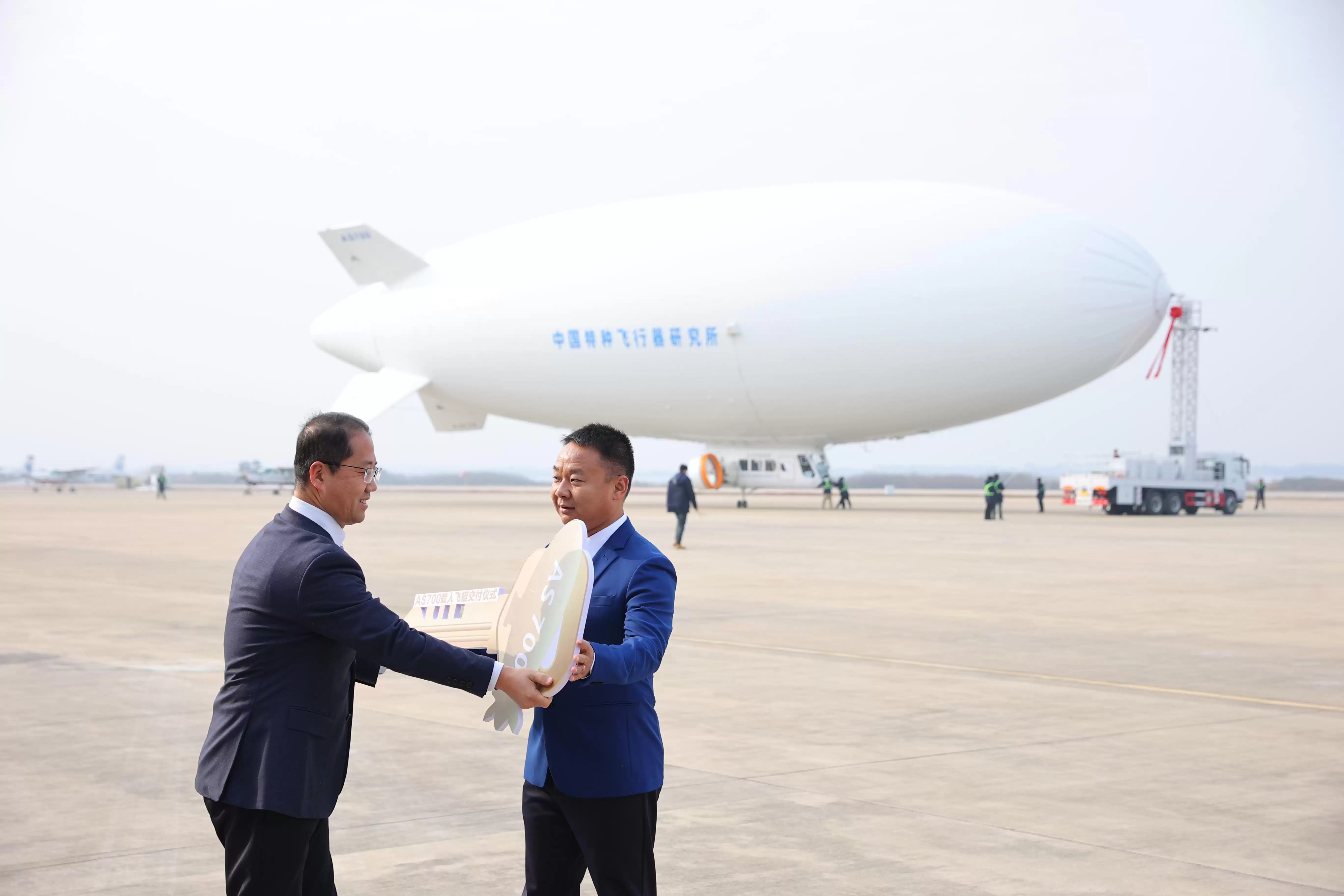 同日,在湖北省荆门市,航空工业特种飞行器研究所正式向太仓文旅集团移交了象征交付的“启航钥匙”,完成了AS700载人飞艇批产首艘的交接。
