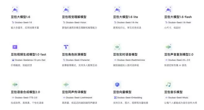 2025年6月以来,豆包大模型1.6、豆包视频生成模型Seedance 1.0 pro、豆包图像编辑模型SeedEdit、豆包语音模型2.0、豆包图像创作模型Seedream4.0、豆包大模型1.8、视频生成模型Seedance 1.5 pro等模型相继发布。每一次模型能力的提升,解锁了更多的应用场景。
