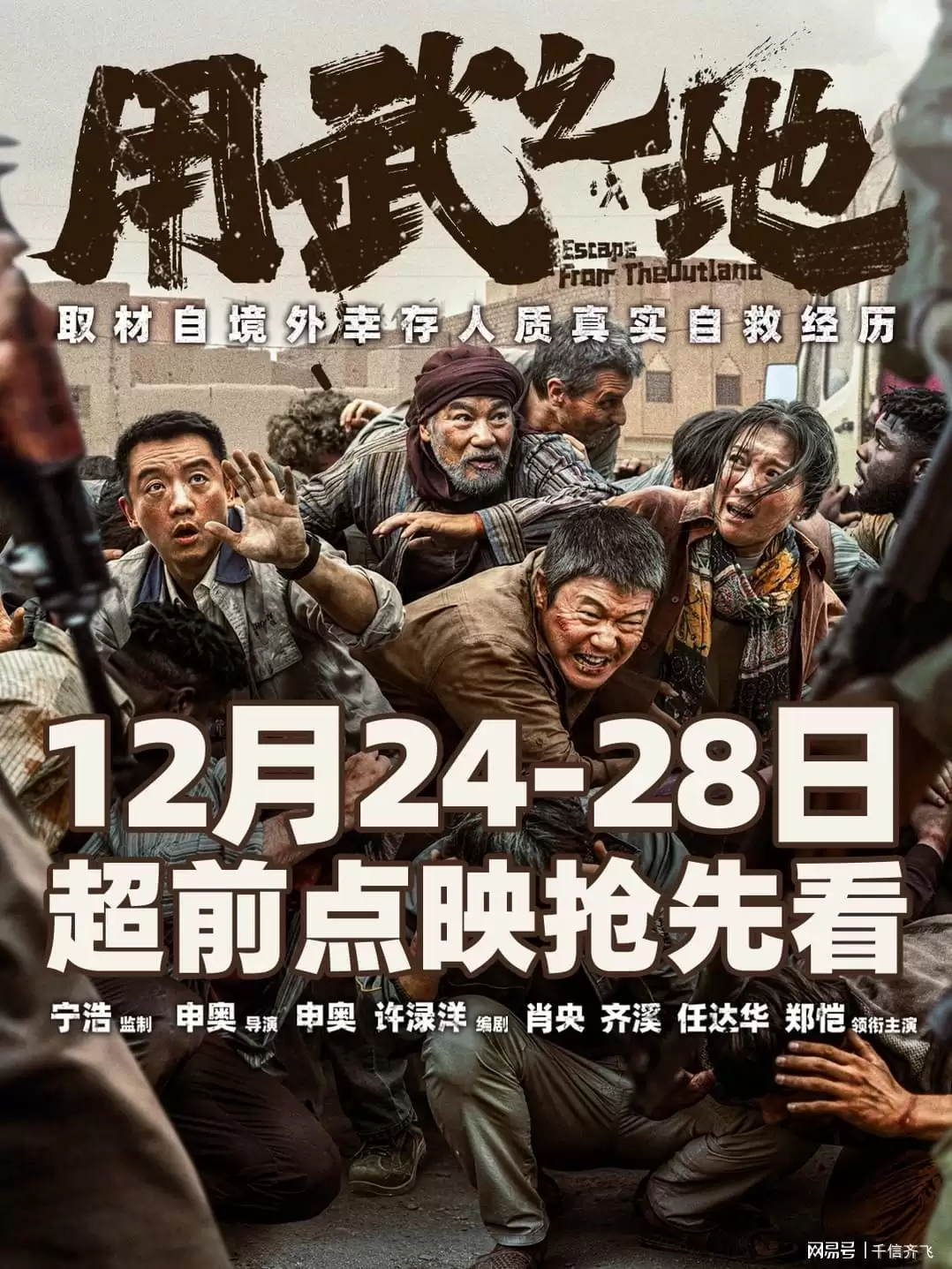 【影讯】电影《用武之地》由宁浩监制,申奥执导,申奥、许渌洋编剧,取材自境外幸存人质真实自救经历,讲述了驻外记者马笑(肖央 饰)和志愿医生潘文佳(齐溪 饰)夫妇,陪同工程师苗峰(郑恺 饰)赴郊区维修基站,遭遇当地局势突变的故事。三人为躲避恐怖组织的无差别袭击一路奔逃,却终究落入敌手沦为阶下囚。他们在狱中结识了华裔商人周伟杰(任达华 饰)。面对恐怖分子毫无人性的暴行与以命换钱的勒索,几人身陷囹圄长达105天,展开了一段惊心动魄的自救逃生历程。该片将于2025年12月31日跨年上映,日前在京举行了首映礼活动。首映现场好评如潮,业内知名人士周冬雨、高叶、王传君等现身支持,并对影片给予了高度评价!