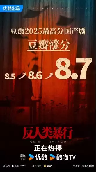 5月开机,3个多月完成拍摄,12月播出,《反人类暴行》最终收获8.7分的高口碑,摘下2025豆瓣国产剧年度评分最高桂冠,导演老算又为影视行业秀了一把“爽文操作”。