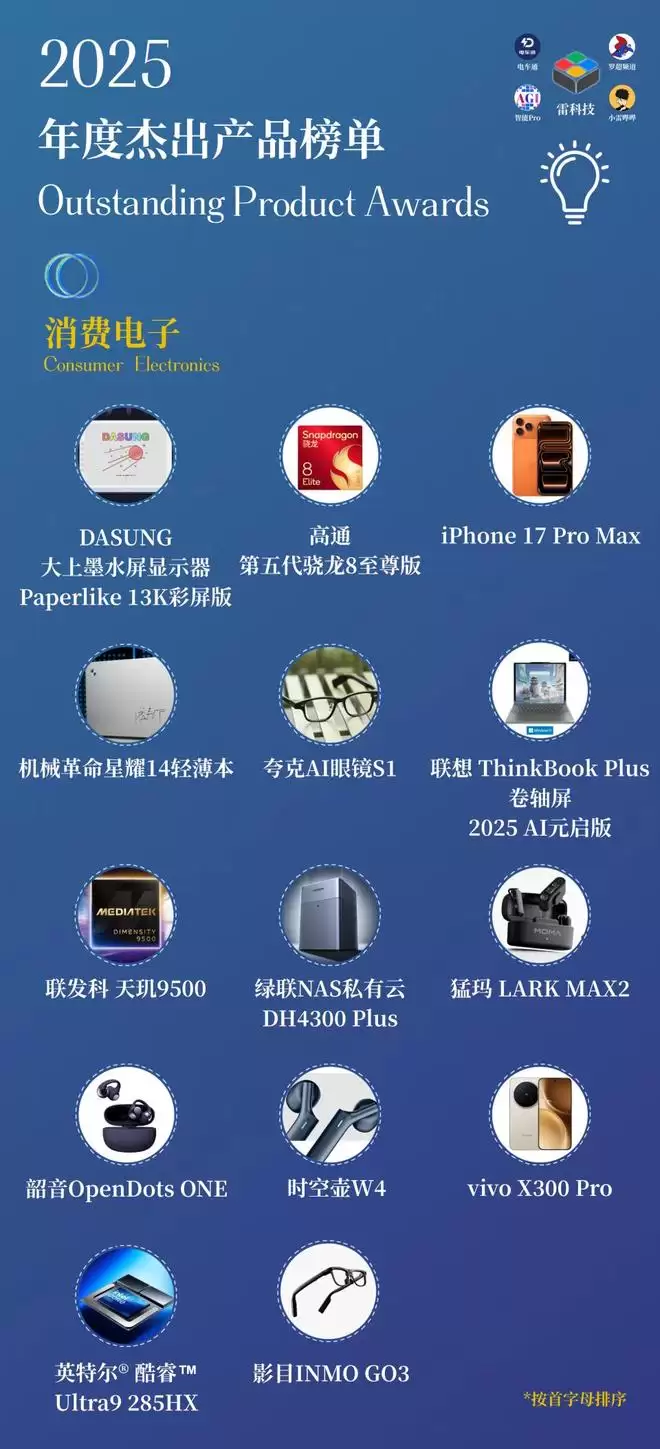 以下是雷科技「2025年度灯塔产品榜(LightHouse Product Awards 2025)」的完整名单: