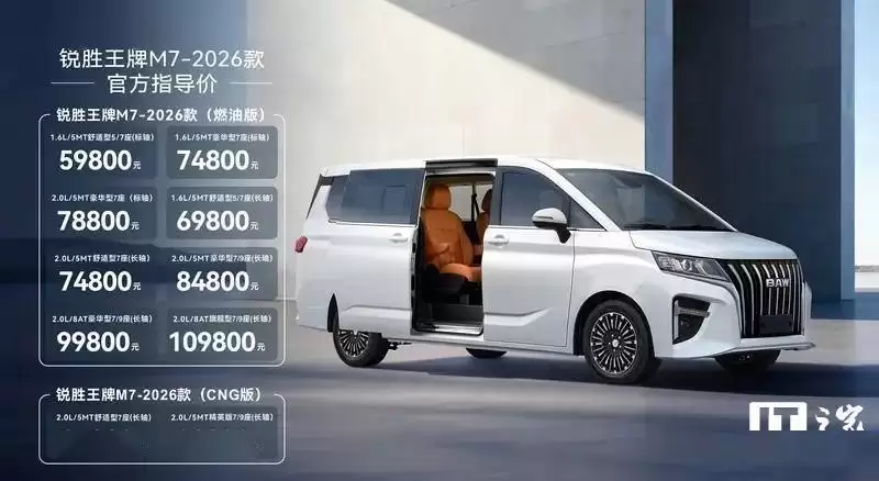 2026款锐胜王牌M7登场:配置升级配色新,5.98万元起
