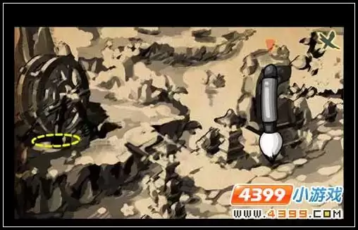第四步:咦,为什么走过去了还是无法进入云海古道?别急,我们来看看这个小提示:将鼠标移动到狐狸红色框标注的地方,会看到提示“水车转动才能开启海中狭道”!