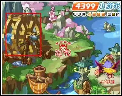 第五步:水车在哪儿呢?哈哈,就在旁边啊!我们点击水车互动一下。