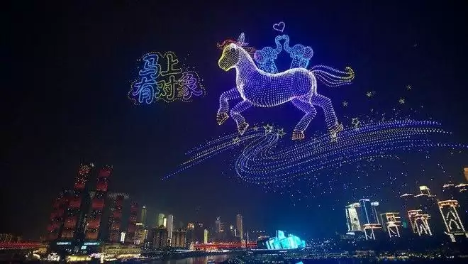 随后,在两江四岸灯光映衬下,无人机编队会依次呈现出“时光沙漏”等经典图案,以及“2026一马当先”“马上如愿”等马年限定祝福画面,将最热辣的新年祝福送到大家面前。与此同时,现场还会有100架挂载灯笼的新型无人机同步升空,氛围直接拉满,方便大家拍出刷爆朋友圈的大片。