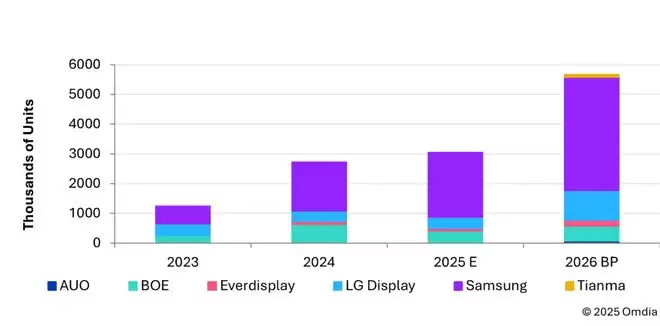 展望2026年,新增需求预计主要来自欧洲整车厂。三星显示有望继续保持其领导地位,而LG显示则有望随着更多项目进入量产阶段而提升其市场份额。