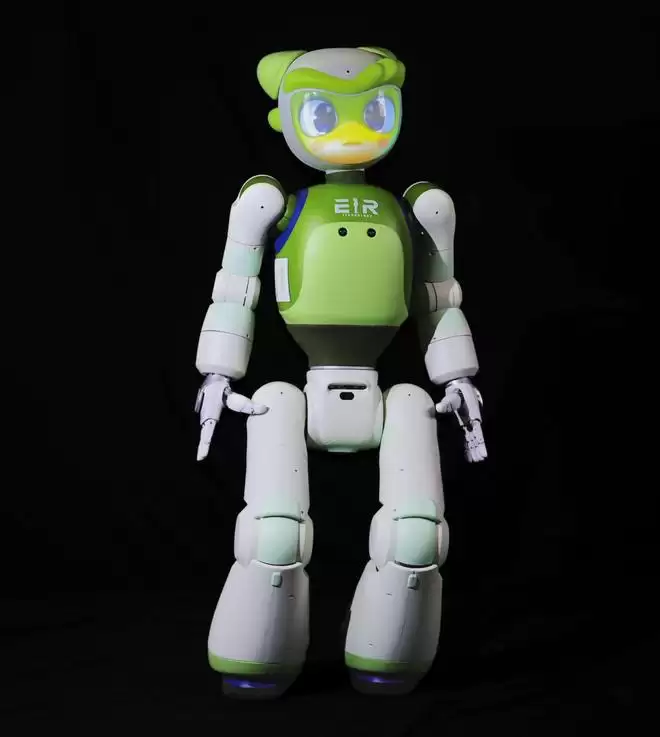 爱湫,外形设计灵感源自西南地区特有保护物种汶川龙蜥,在形态上兼具亲和力与独特性。绿色外观下,藏着全球首个“情感-语言-动作”模型(ELA)。