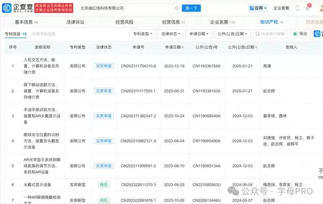 企查查信息显示,细红线的专利申请停留在2024年12月,而2024年前后,正是罗永浩转头做AI的时候,且已公开的专利中几乎未见AI软件相关专利。