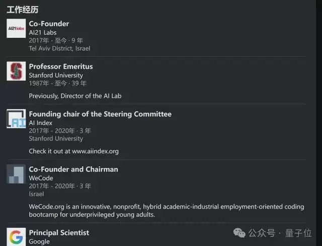最后一位Yoav Shoham则是斯坦福大学计算机科学系的荣誉退休教授,曾担任谷歌首席科学家。