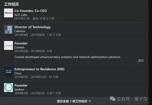 个人主页显示,包括AI21 Labs在内,他现在一共领导并积极参与着5家公司的运营。