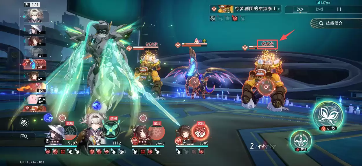 1、寻找具备韧性保护机制的敌人——【惊梦剧团的甜猿泰山】。