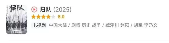 第六名,《归队》 评分8.0