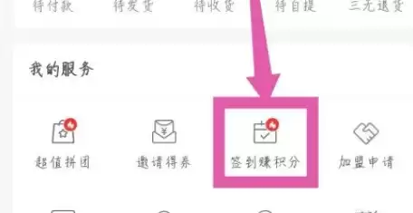 滑动后,你会在页面下方发现“签到赚积分”的模块,点击它就能进入签到相关页面。
