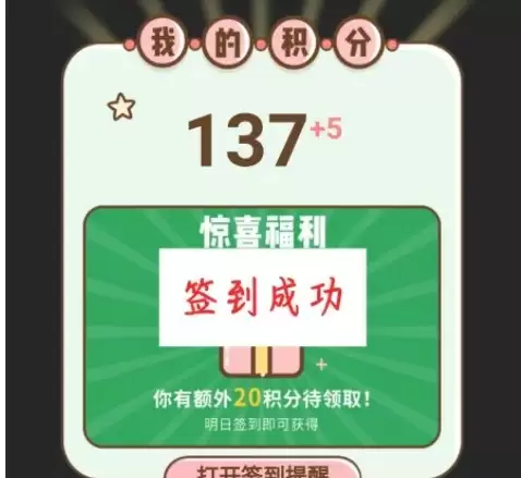 签到成功后,系统会弹出提示,并展示你的积分详情页面。