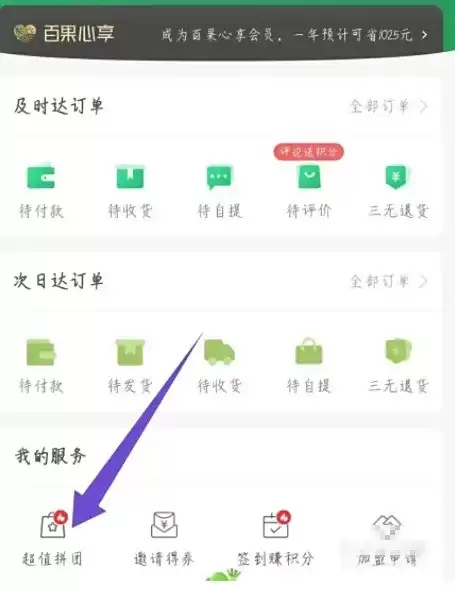 在“我的”页面里,向下滑动找到“我的服务”区域,点击其中的“超值拼团”功能。