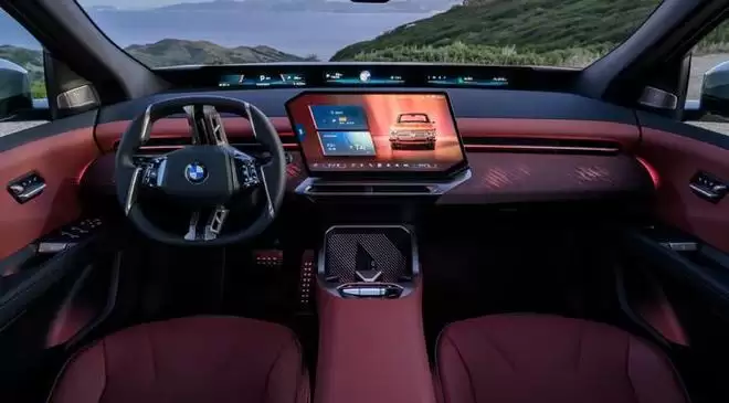 更何况,宝马新车的内饰也做了全面焕新,那个横跨风挡下沿的全景平视信息屏、造型科幻的「超感方向盘」,还有那块非典型的平行四边形中控屏,几乎就是从概念车里直接抠下来的。