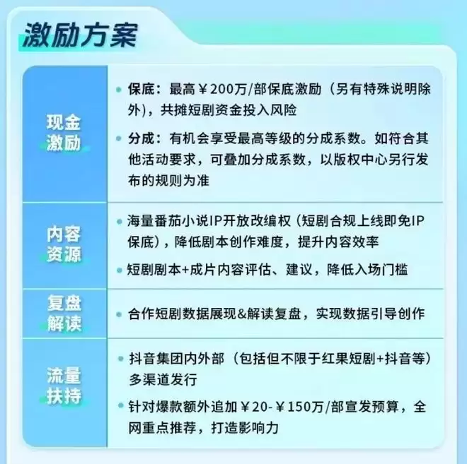 基于市场需求的改变,各大平台的扶持策略也多侧重于鼓励多元化的内容创作。例如在2025年,抖音集团短剧版权中心推出“万象计划”,第一期聚焦非遗民俗,第二期则关注古典名著与传奇人物,将重点激励品类放在当下市场占比相对更低的男频内容上。根据最新的激励方案,平台将从现金、资源、宣推等多个方面提供支持,对于成片特别优秀的特评级作品,激励金额甚至不设上限。