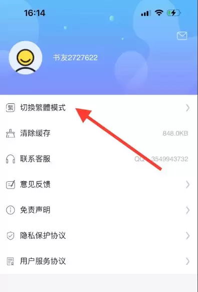 第二步:找到并点击【切换繁体模式】选项;