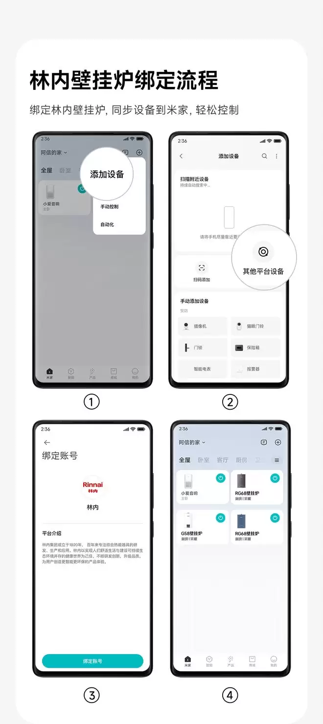 此外,林内旗下的暖界系列RG68零冷水壁挂炉,也同样完成了与米家App的接入。