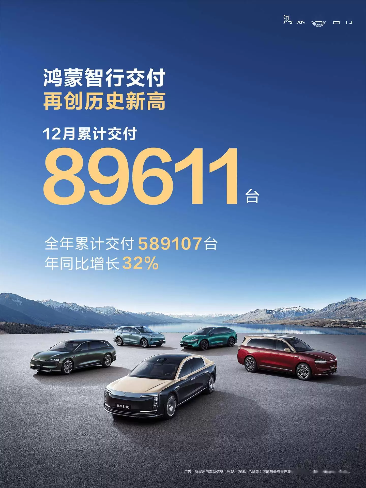 鸿蒙智行近日公布了2025年度的市场表现与辅助驾驶技术使用情况,一系列亮眼数据引发行业关注。全年累计交付量突破58.9万台,较上一年增长32%。其中12月单月交付量达89,611台,连续三个月刷新月度交付纪录,展现出强劲的市场扩张势头。