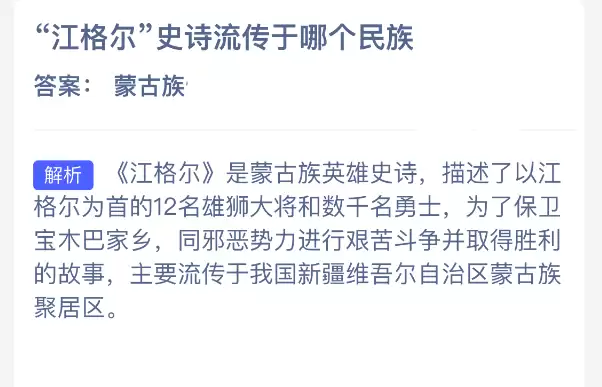 支付寶螞蟻新村解謎:江格爾史詩起源哪個民族?(答案)