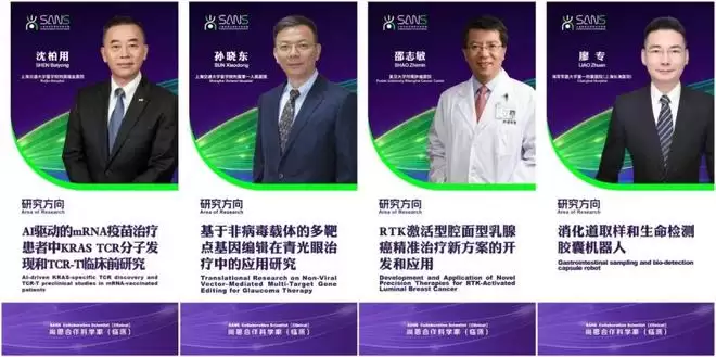在入选项目的基础上,尚思又进一步通过多轮的项目辅导和建议,以及来自科学界、临床界、产业界的专家评审,最终选拔出首批“尚思合作科学家(临床)”:长海医院的廖专(上消化道胶囊内镜技术的拓展和应用);上海市第一人民医院的孙晓东(青光眼的多基因疗法);上海交通大学附属瑞金医院的沈柏用(新抗原mRNA疫苗结合TCR-T治疗晚期肝癌);复旦大学附属肿瘤医院邵志敏(腔面型乳腺癌的分子病理分型和药物应用)。尚思认为,这些研究者的未来研究计划,源自真实的临床问题、针对明确的未满足的临床需求、具备相对清晰的开发和应用路径,恰是尚思认为最应当支持的“医生做科研”的模式。