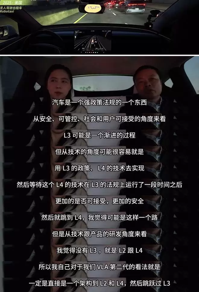 这种共识背后,是对 L3 过渡属性的集体认知。特斯拉将 Robotaxi 能力下放至 FSD V14,小鹏在持有 L3 测试牌照的情况下直指 L4。两家企业都清楚,责任划分模糊的 L3 既难以满足用户安全需求,也无法实现商业化规模效应,终将被“人负责的 L2”和“车负责的 L4”所取代。