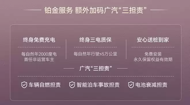 除了购车补贴,广汽昊铂的“铂金服务”还进一步整合了广汽“三担责”承诺。昊铂不仅为车主提供终身免费充电、终身三电质保、安心送桩等全周期服务,此次更新增广汽“三担责”承诺,明确对车辆自燃、智能泊车事故、电池衰减提供责任保障,有效解除了用户用车的后顾之忧。