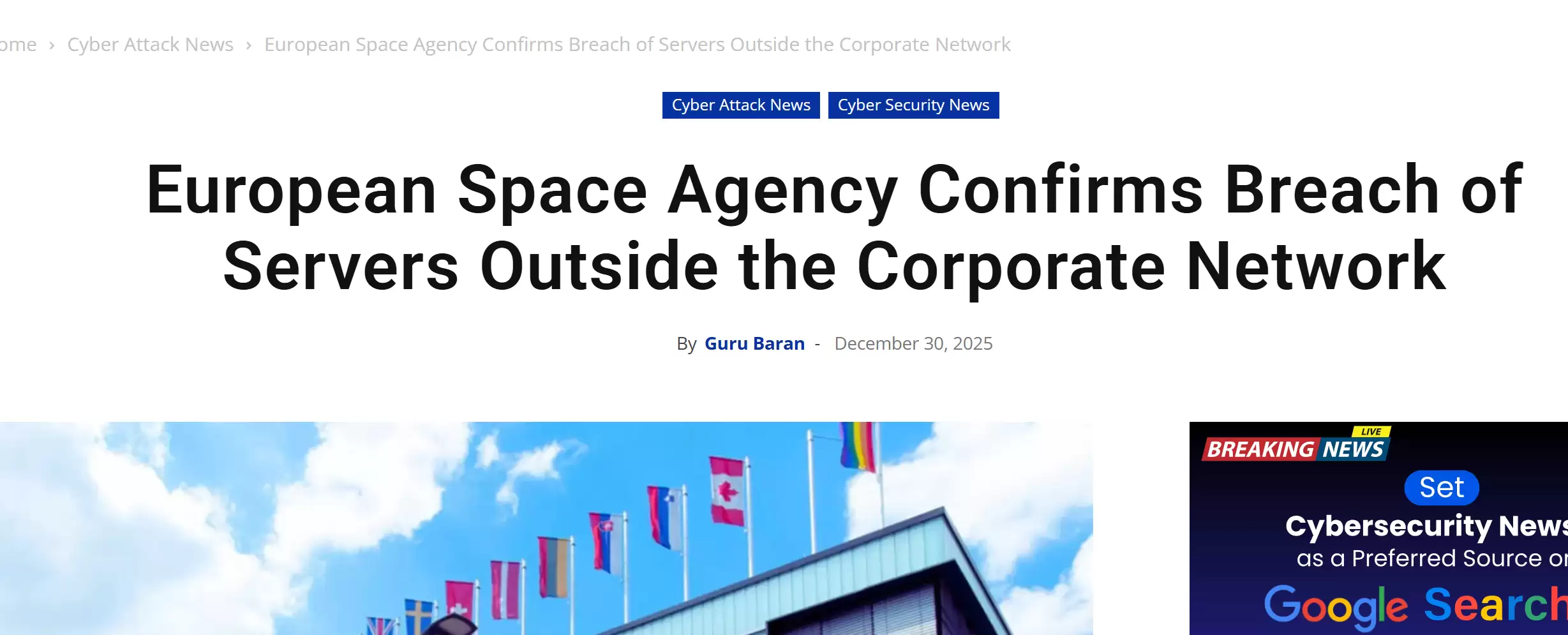 ESA服务器遭黑:欧洲航天局证实外部服务受入侵,未涉机密数据