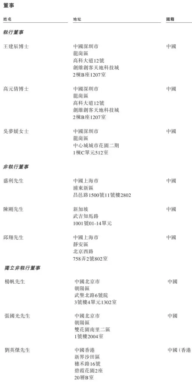 王建辰博士,36岁,为董事长、执行董事兼首席执行官,于2017年5月与高博士共同创办公司,自2017年5月起担任公司董事兼首席执行官。彼于2024年1月调任为执行董事。