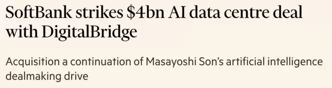 另一边同意斥资40亿美元收购数据中心投资公司DigitalBridge,「加强其在人工智能领域的布局」。