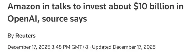 本月早些时候又有报道称,OpenAI正在探讨接受来自亚马逊超过100亿美元的投资意向。