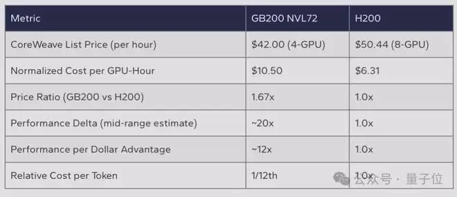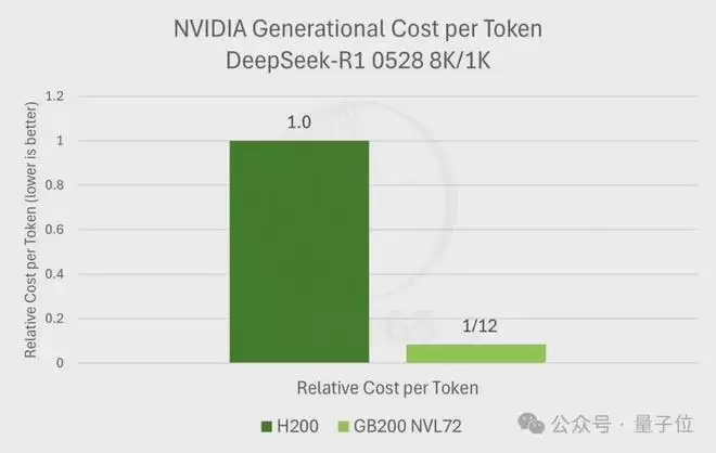而GB200 NVL72价格仅上涨1.67倍,换算下来每美元性能提升约12倍,单token成本降至H200的十二分之一。