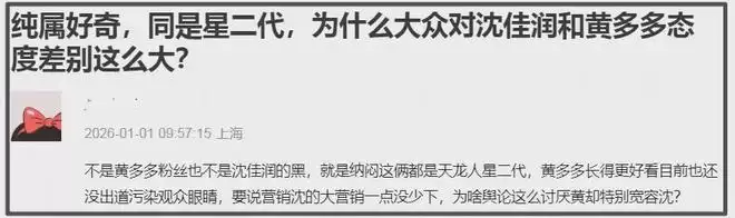 当然,沈佳润的年龄确实也不大,既然热爱舞台的话,还是要多练技术和心态,而小沈阳们的托举也要适量。普通人可不想当了一天牛马,回家还要看星二代在舞台上划水,多吐槽两句就是不够宽容,还要被一堆水军攻击,见好就收吧。