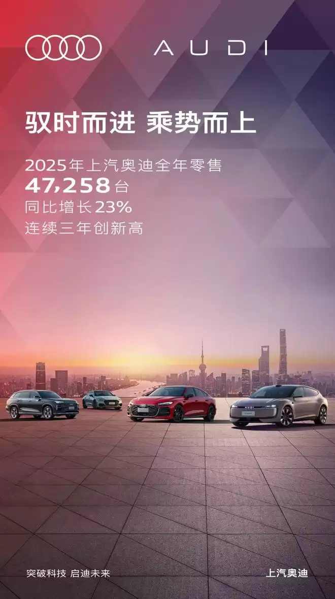 上汽奥迪2025年销量47258辆,同比增长达23%