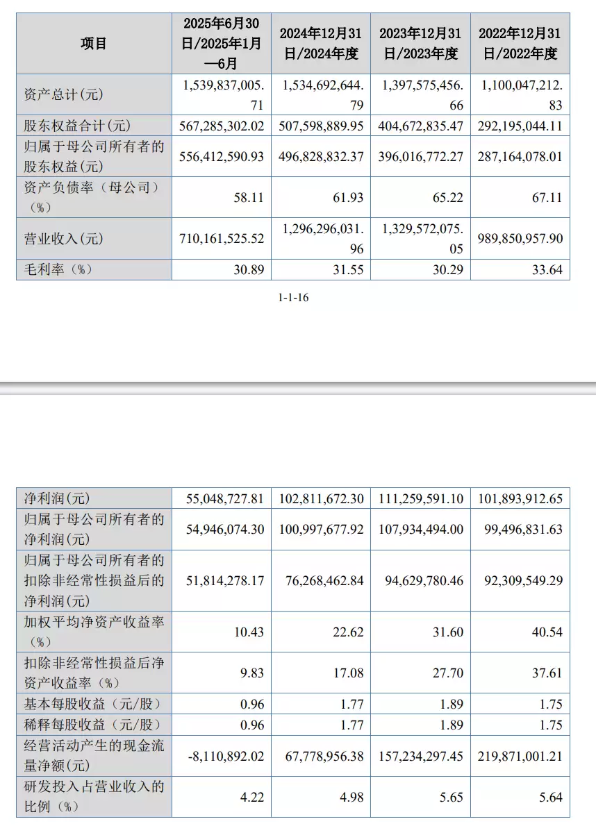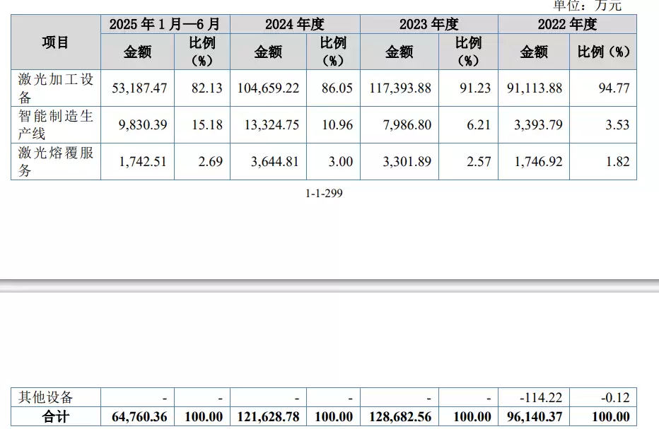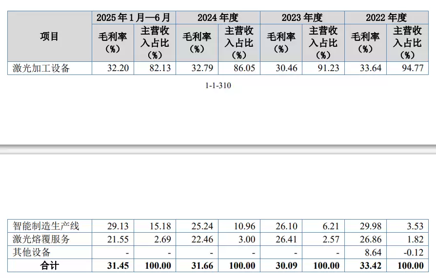 报告期内(2024年至2025年上半年),森峰激光的营业总收入分别为9.9亿元、13.3亿元、12.96亿元及7.1亿元;同期实现的净利润分别为1.02亿元、1.11亿元、1.03亿元及5504.87万元。