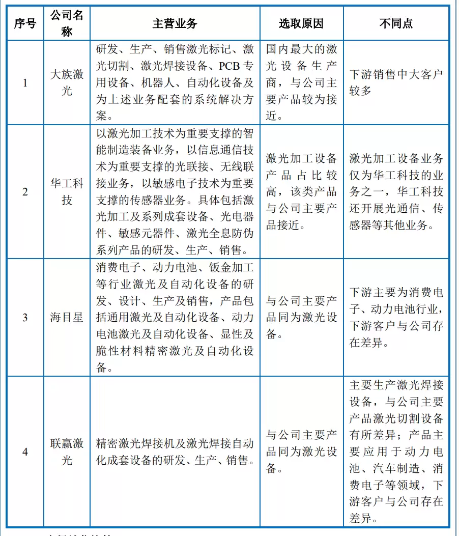 森峰激光与同行业可比公司的关键经营数据对比如下: