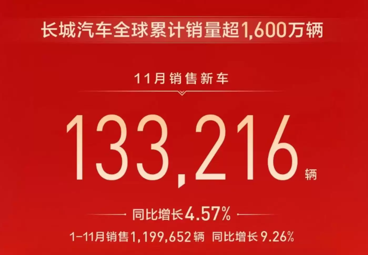 长城汽车2025年11月销量数据,图源长城汽车最新微信公众号