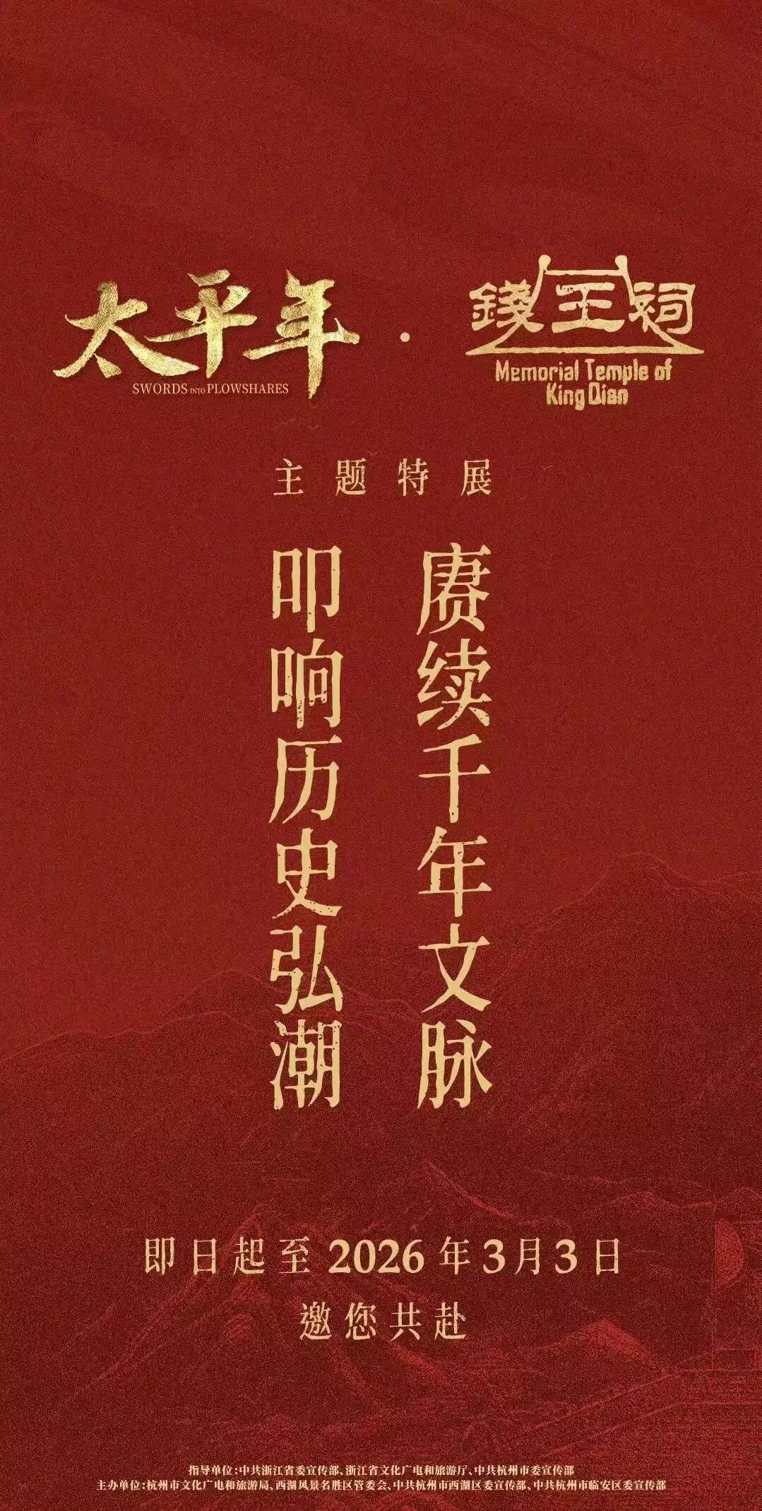 即日起至3月3日,观众可前往钱王祠,步入《太平年》的史诗世界,聆听千年前的吴越华章。这部凝聚十年匠心、承载时代精神的精品巨制,将为全国观众正式拉开波澜壮阔的历史大幕,共赴一场关于“太平”理想与文明赓续的视听盛宴。