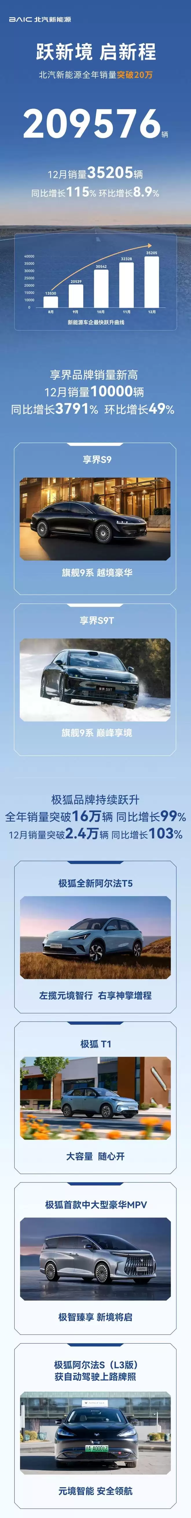 北汽新能源2025年销量目标剑指20万辆,12月单月首破万