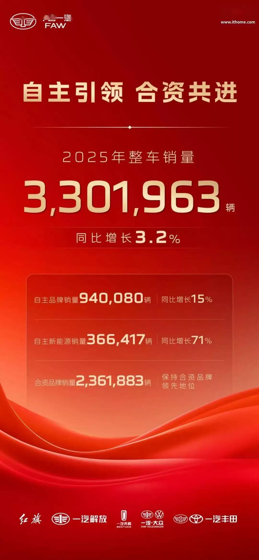 2025年中国一汽整车销量突破330万辆,自主品牌与新能源实现大幅增长