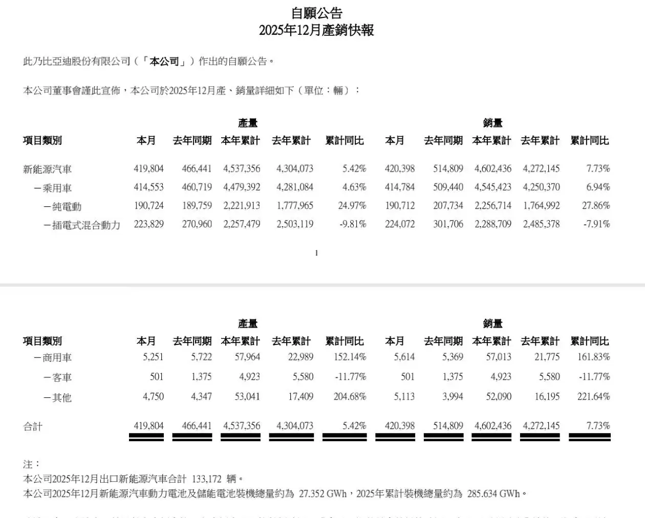 在海外市场,比亚迪同样表现亮眼。2025年12月,比亚迪出口新能源汽车数量达到133,172辆。值得关注的是,整个2025年,比亚迪海外销量成功突破100万辆大关;这标志着比亚迪在全球新能源汽车市场的竞争力进一步提升,海外市场拓展取得了重要的阶段性成果。