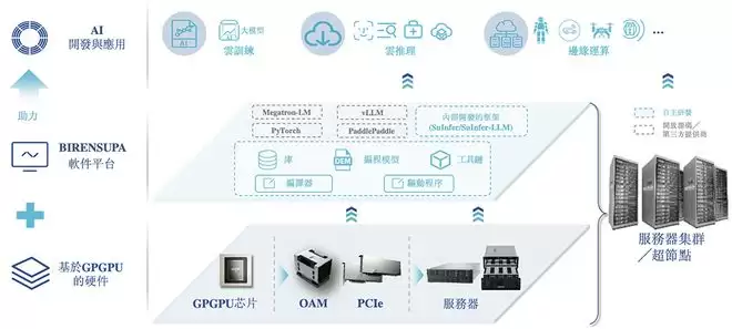 其智能计算解决方案建立于五大支柱:自主研发的GPGPU架构、系统级芯片(SoC)设计、硬件系统、软件平台及集群大规模部署优化。